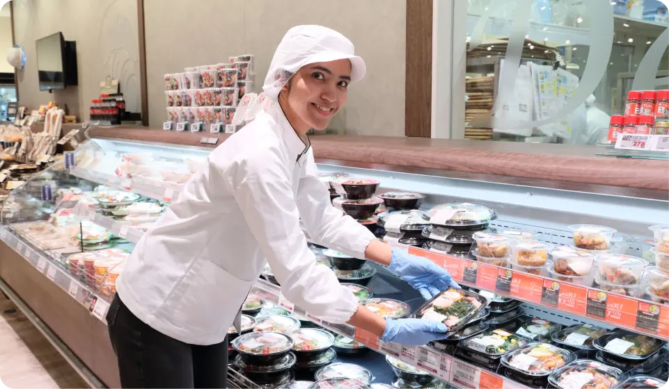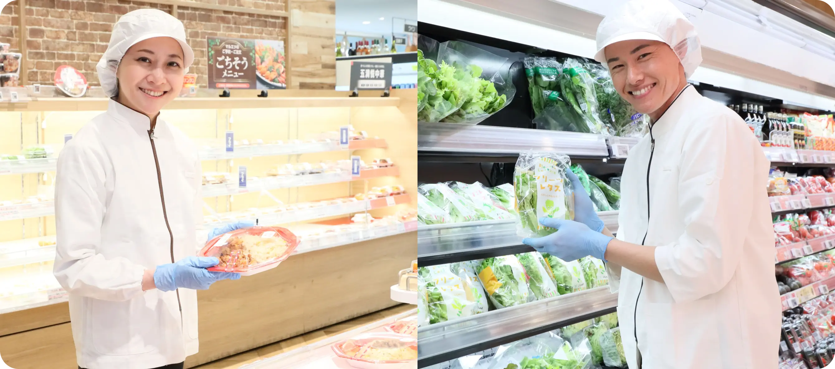 「料理が得意じゃないとできない仕事」と思われがちですが、そんなことはありません。一番手間のかかる食材をカットする作業はしなくていいですし、レシピもマニュアルもきちんと揃っていて、さらに周りの手厚いサポートもあります。簡単な調理だけで、温かいお弁当や揚げたての天ぷらをお客さまに届けられるやりがいのある仕事です。少しでも興味があれば、安心して挑戦していただけると思います。