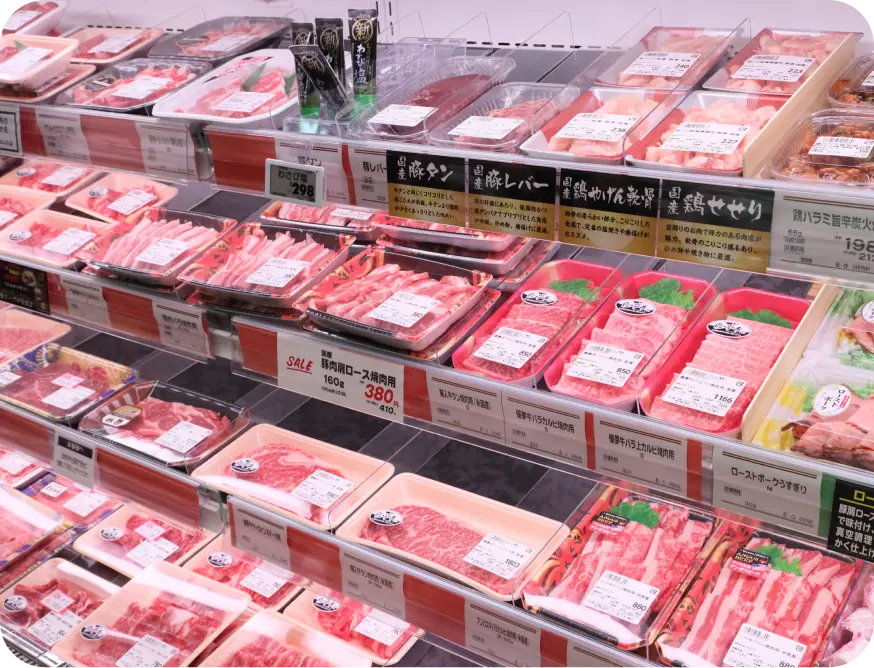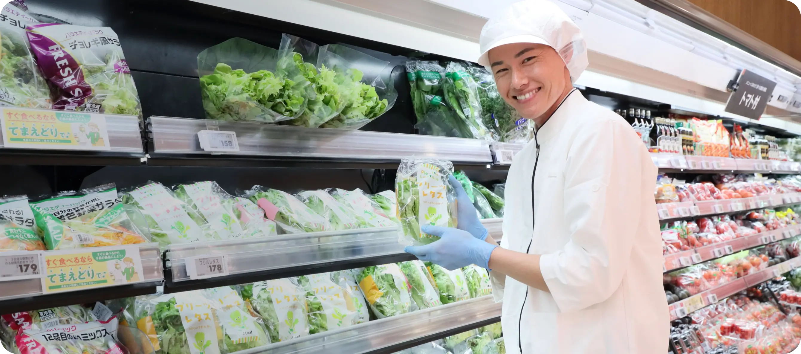 野菜・果物・お肉・お魚などの食材を扱い、鮮度を保ちながら売り場に並べるのが生鮮部門。